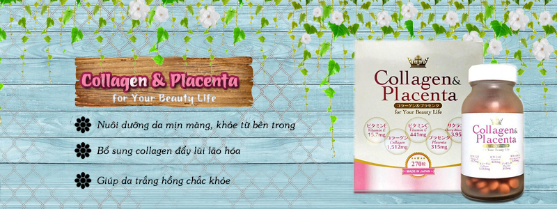Viên uống collagen & placenta của Nhật với thành phần collagen, nhau thai cừu, HA và Ceramide tác dụng tái tạo da, chống lão hóa, làm tăng độ đàn hồi của da bổ sung nhau thai cừu giúp da căng mượt trắng hồng sau tuổi 30.