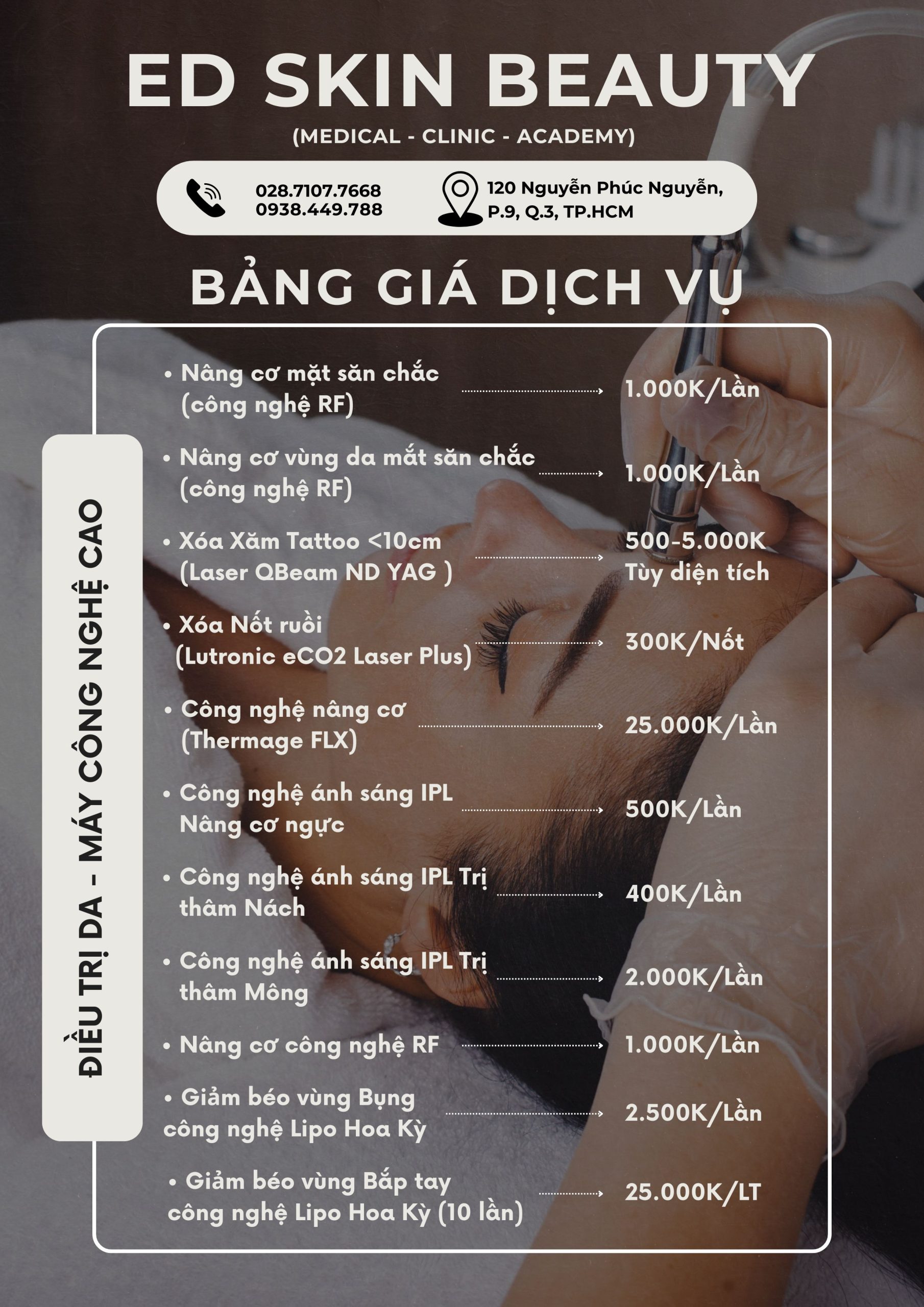 ED BEAUTY Clini c& Spa – Bảng giá dịch vụ chăm sóc da