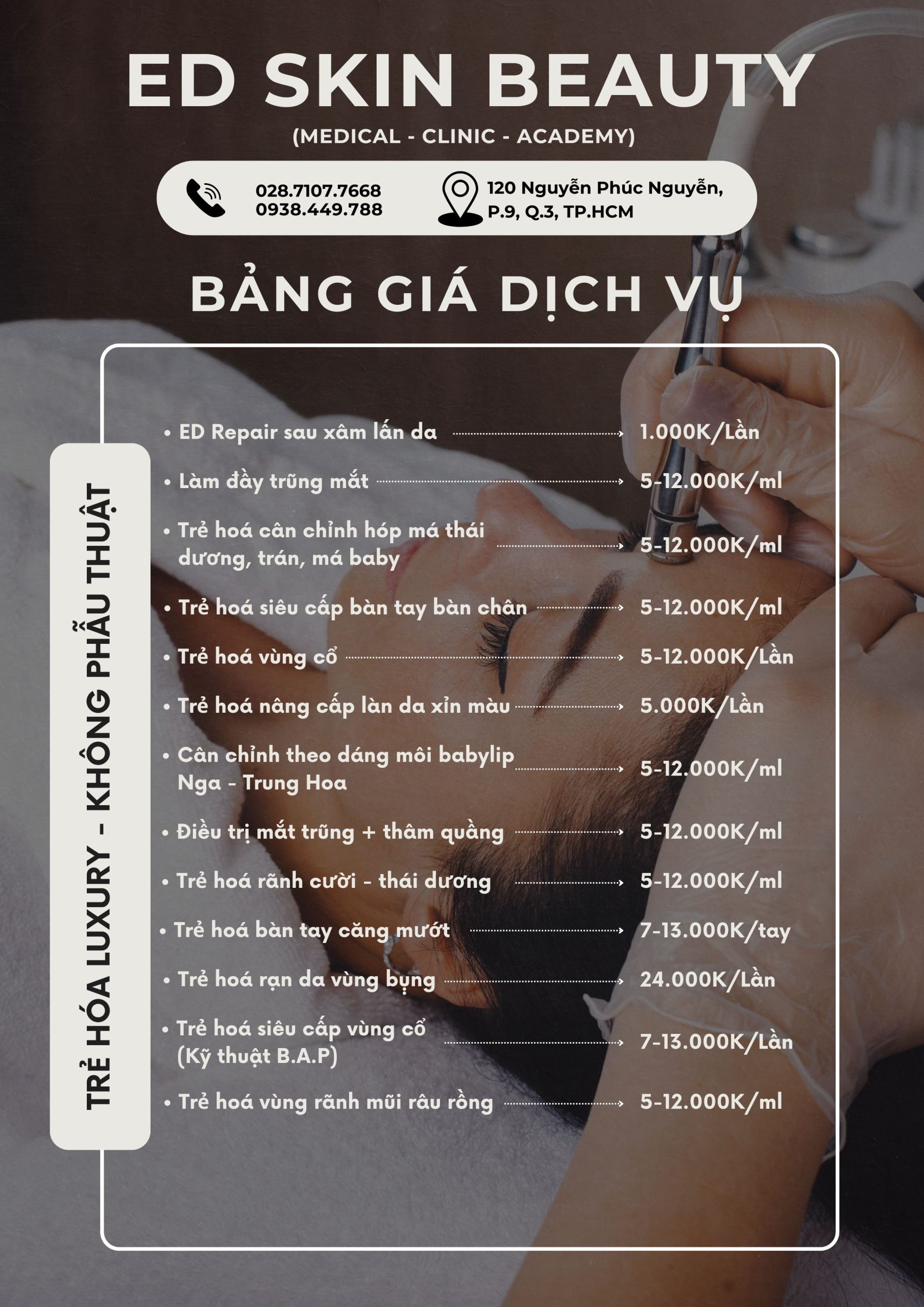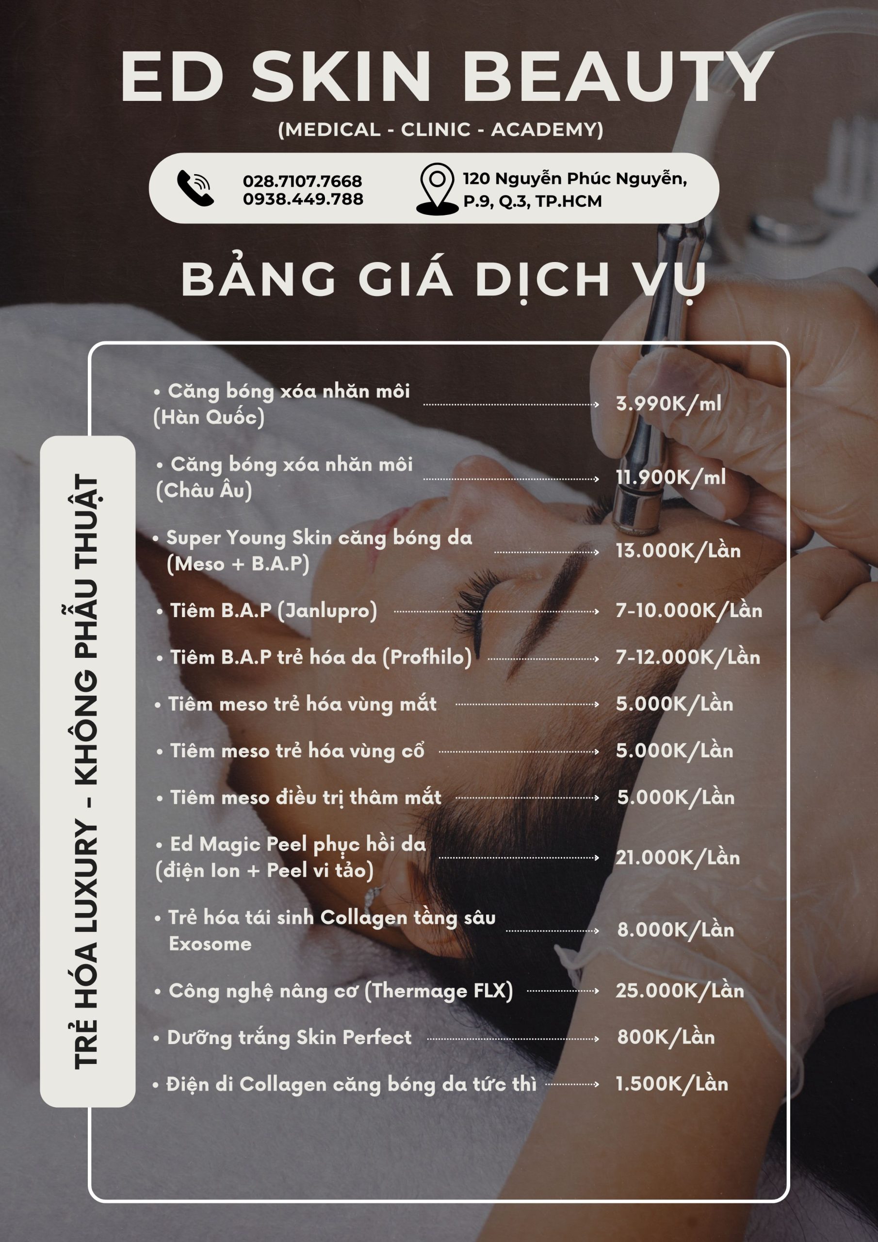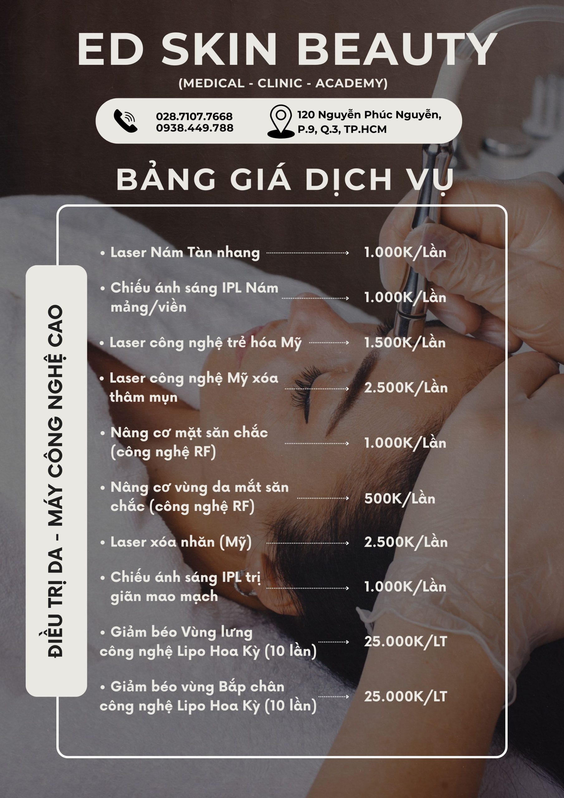 ED BEAUTY Clini c& Spa – Bảng giá dịch vụ chăm sóc da