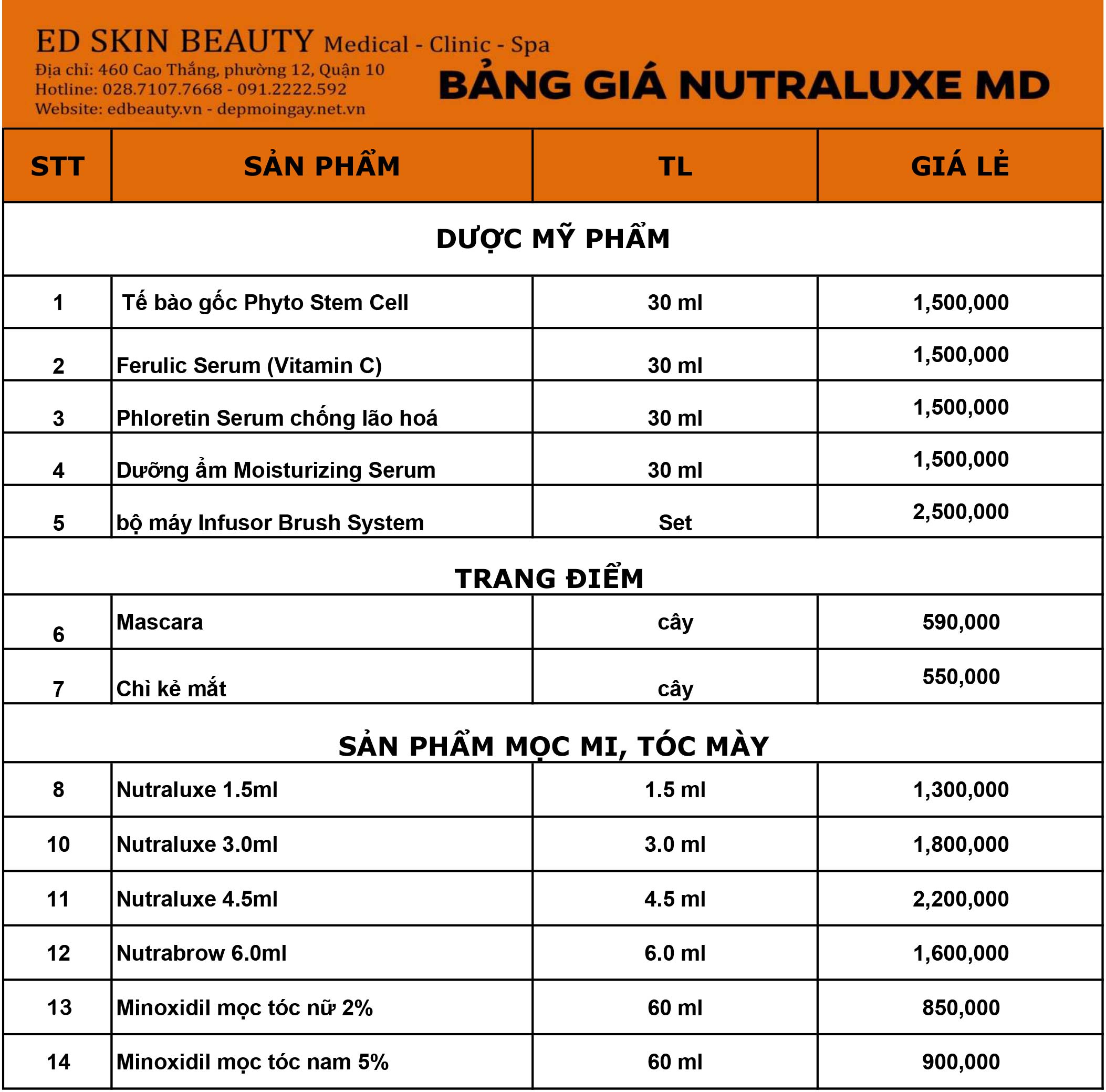 Tham khảo bảng giá sản phẩm Nutraluxe MD chính hãng ngay sau đây: