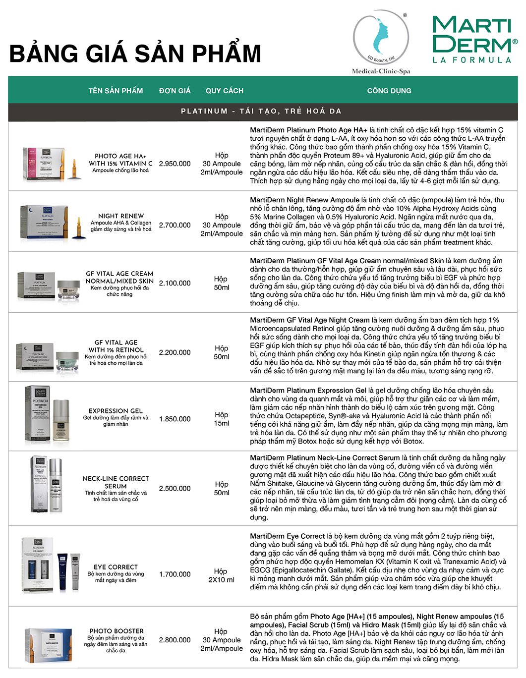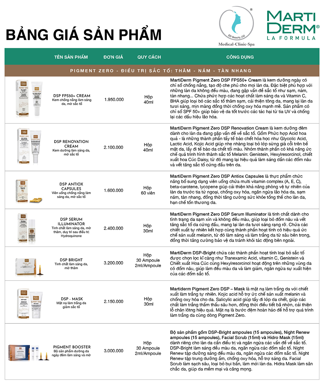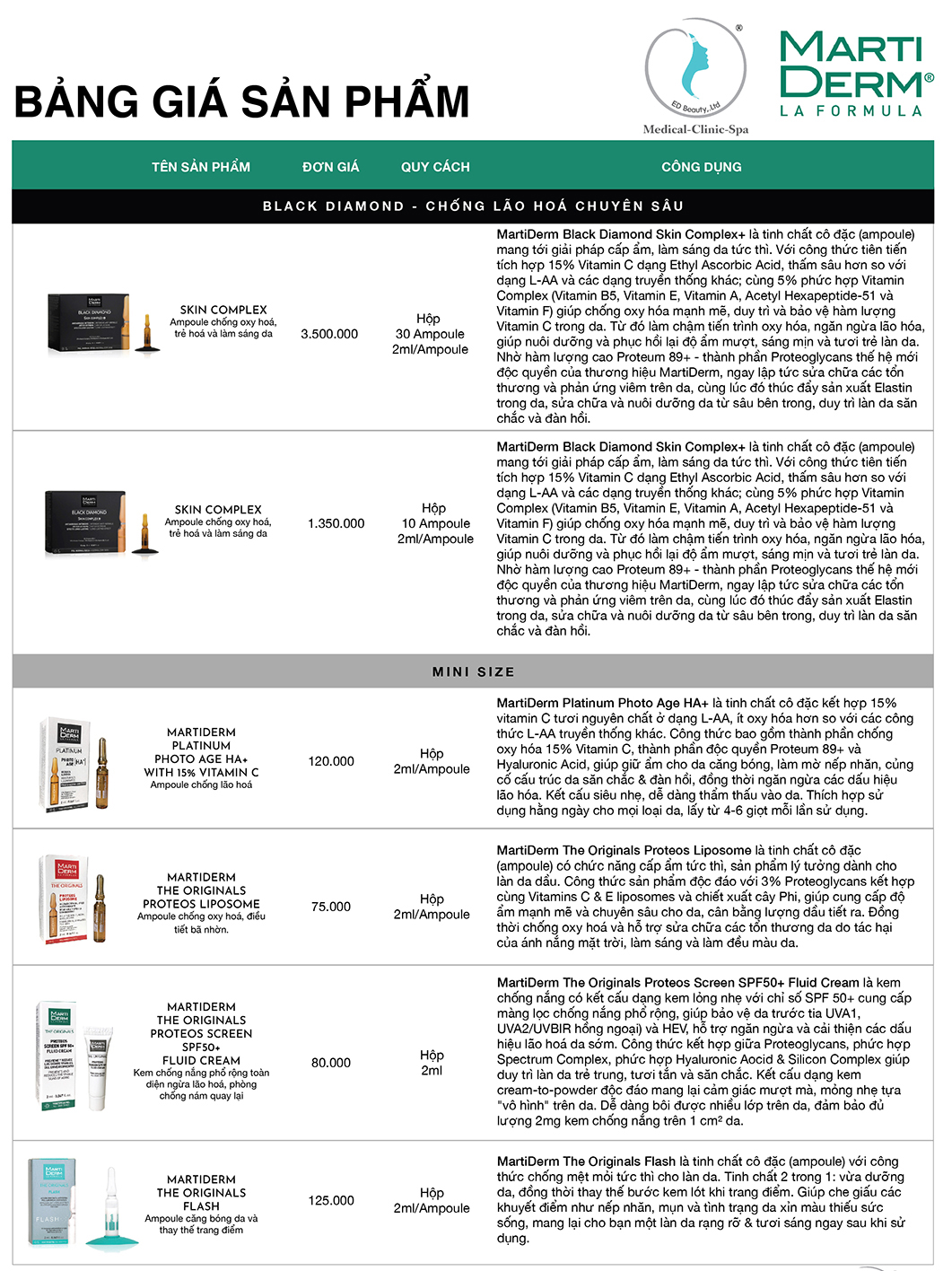 Hiểu được nhu cầu tìm kiếm các sản phẩm MartiDerm, chúng tôi trân trọng gửi đến Quý khách hàng Bảng giá Dược Mỹ phẩm MartiDerm tại Việt Nam. Chúng tôi hy vọng có thể giúp Quý khách mua được sản phẩm chính hãng chất lượng, giá cả chuẩn. Tránh được tình trạng mua phải hàng kém chất lượng, bị sai giá, ép giá. Cùng theo dõi thông tin bảng giá sản phẩm MartiDerm tại Việt Nam ngay sau đây: