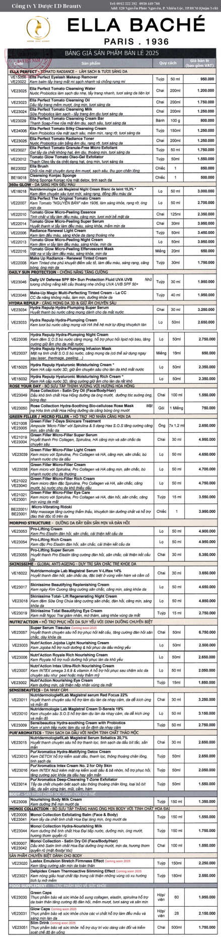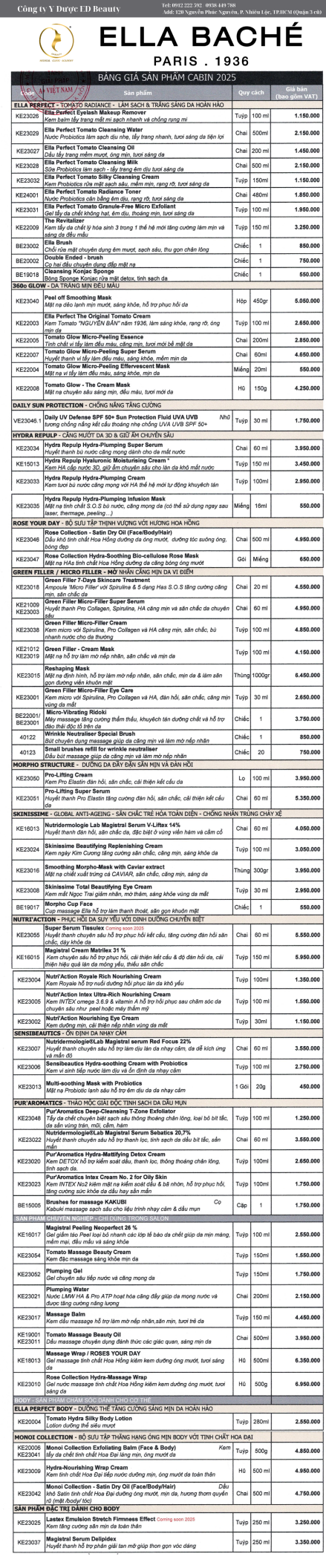 ED Beauty là đơn vị phân phối sản phẩm Ella Bache chính hãng tại Việt Nam. Bạn có thể yên tâm mua hàng Ella Bache tại công ty chúng tôi. ED Beauty thông báo đến quý khách hàng bảng báo giá sản phẩm bán lẻ.