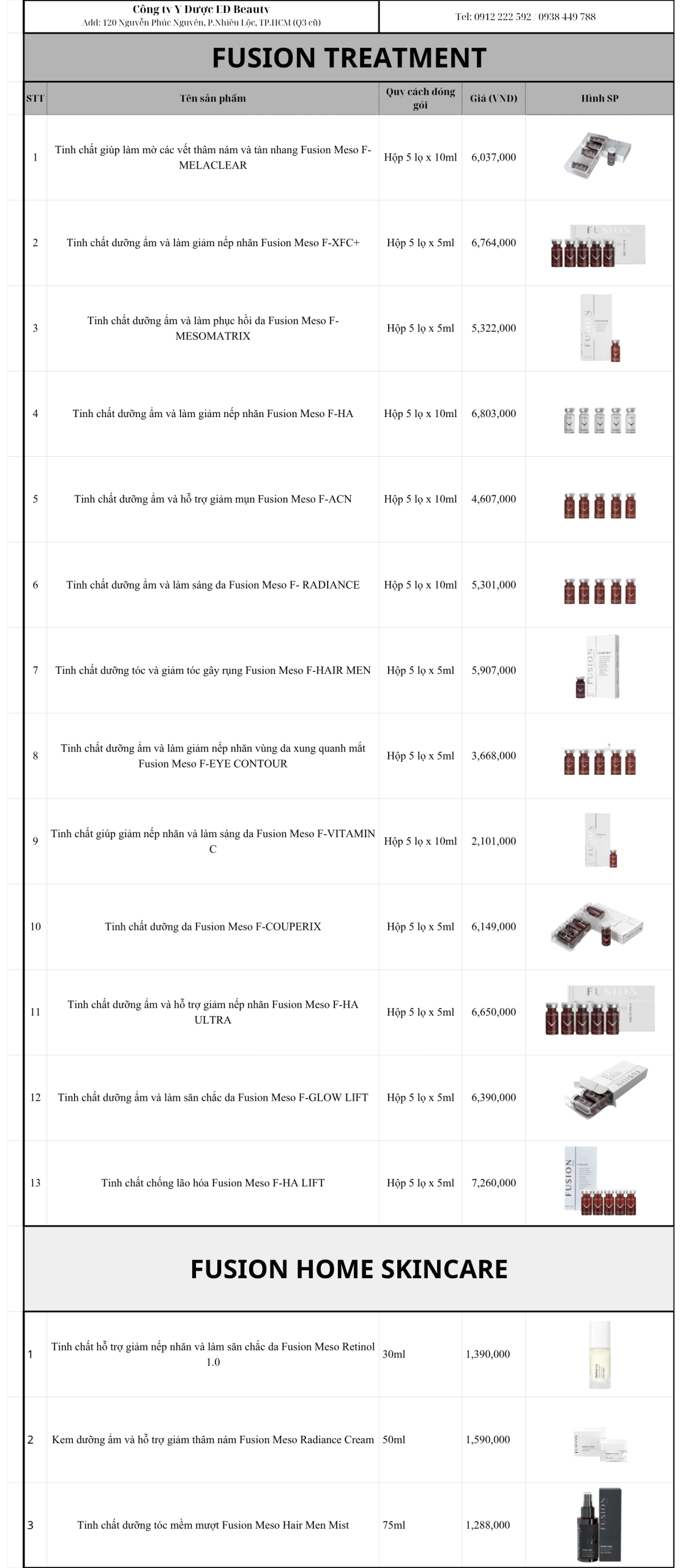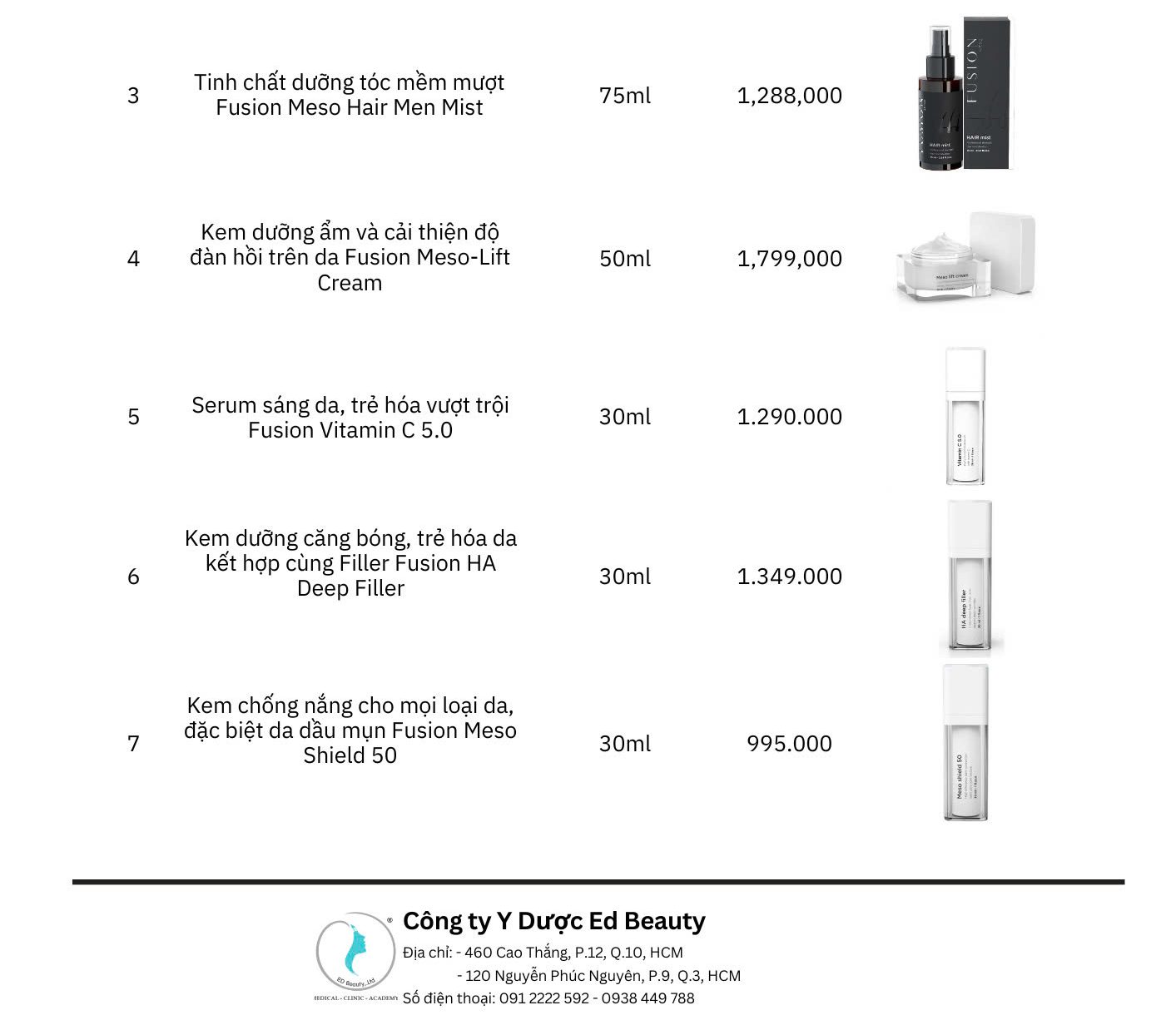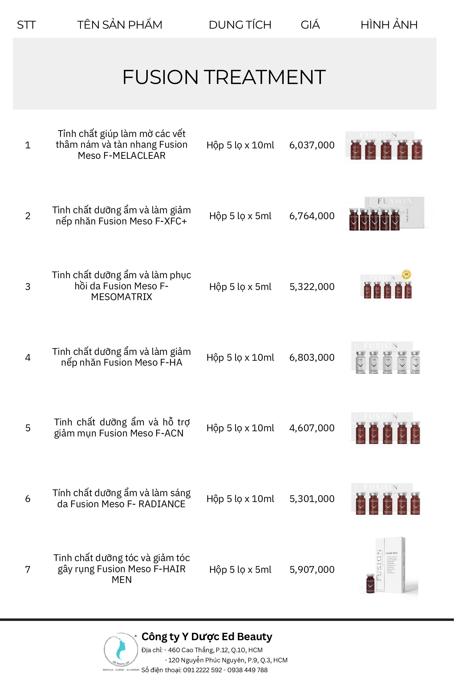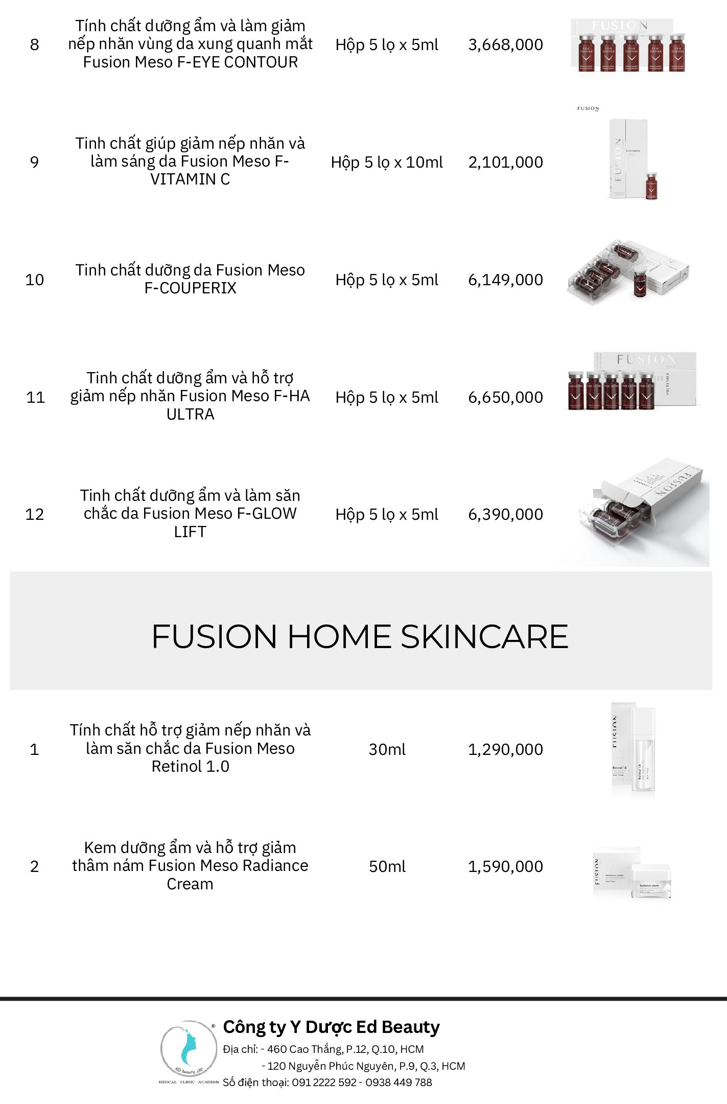 BẢNG GIÁ MỚI CỦA DÒNG SẢN PHẨM FUSION MESO