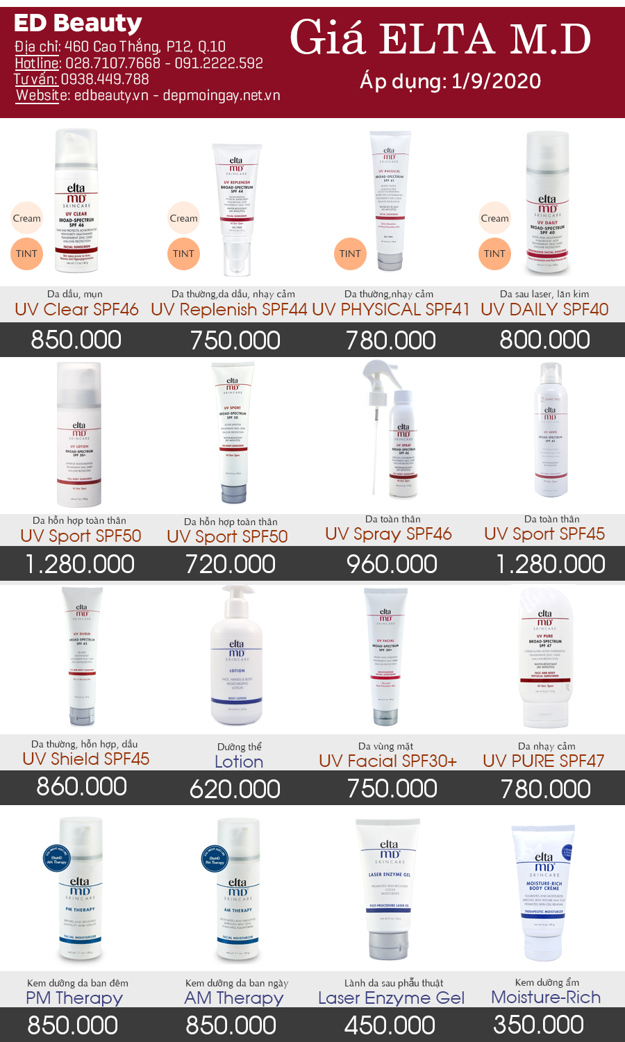 Bảng giá đồ họa chi tiết mỹ phẩm Eltamd các sản phẩm có sẵn tại cửa hàng ED Beauty