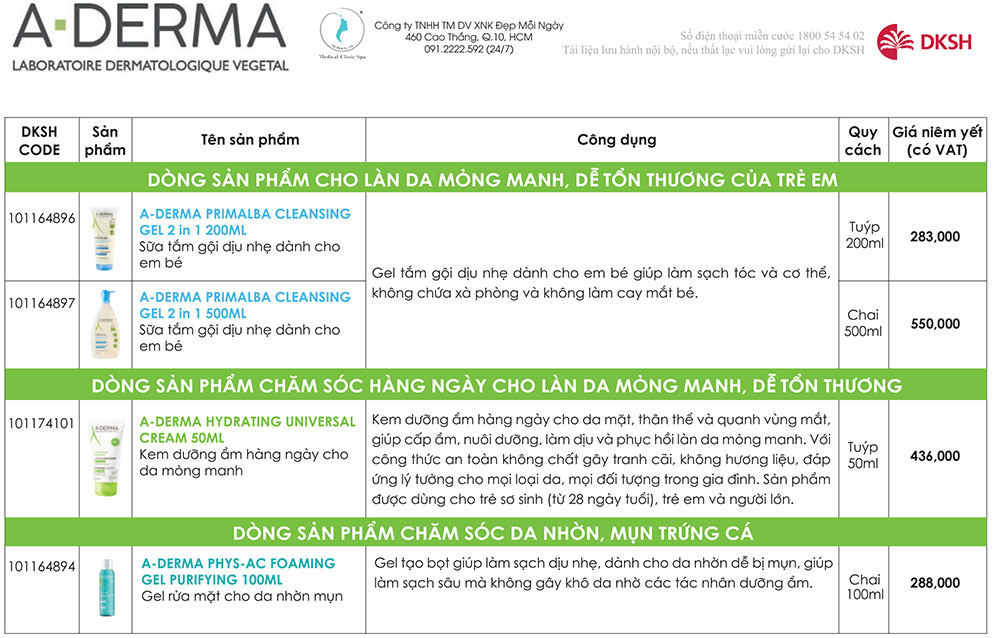 Thấu hiểu nhu cầu sử dụng mỹ phẩm A-Derma, ED Beauty thông báo bảng giá dược mỹ phẩm A-Derma mới nhất 2023 ngay sau đây: