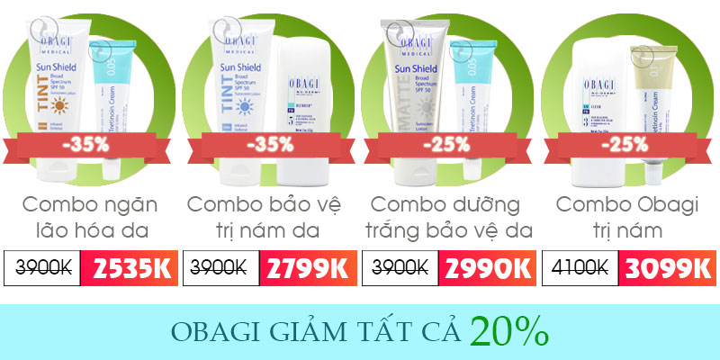 –Dược mỹ phẩm Obagi Medical giảm 20% cho tất cả sản phẩm. Riêng những sản phẩn dưới dây giảm từ 25% đến 35%