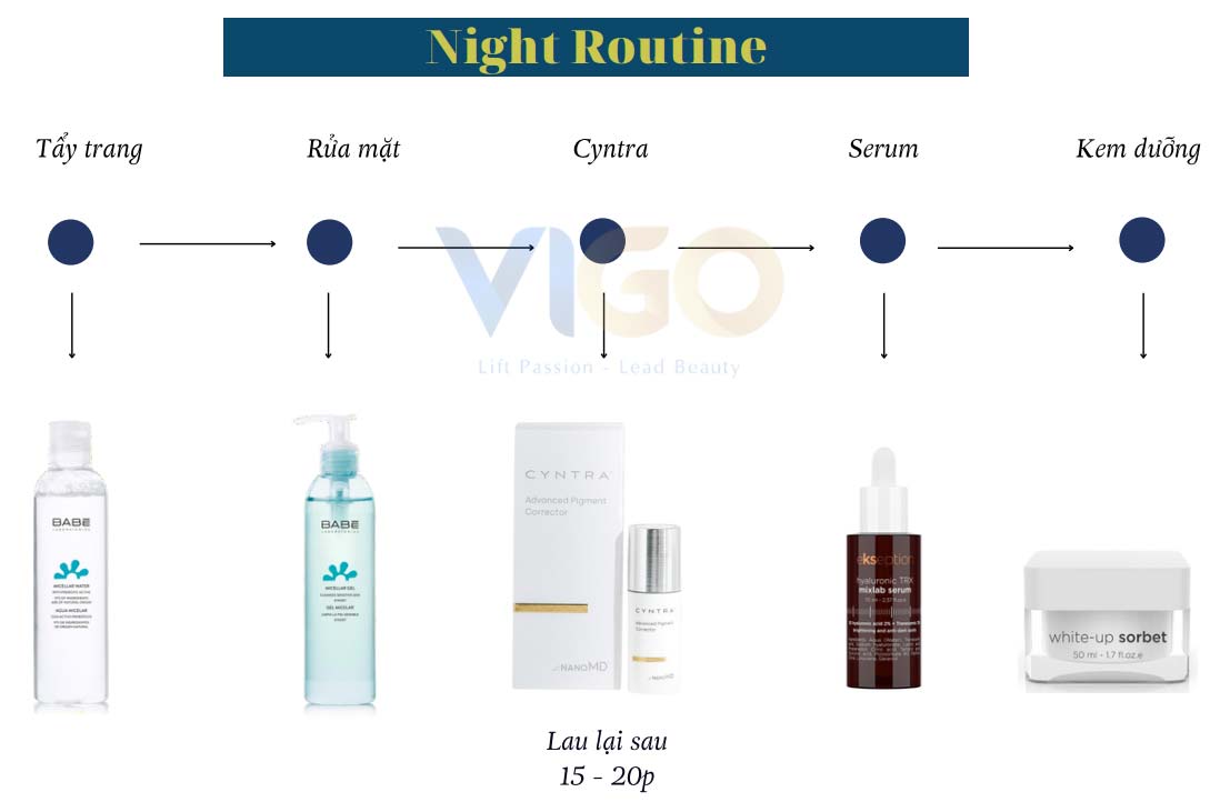Bên cạnh đó, sử dụng kết hợp viên uống trắng da của Nano MD Brit-N 2.0 và Kem hiệu chỉnh sắc tố Nano MD Cyntra giúp tăng công năng trẻ hóa và trắng sáng.