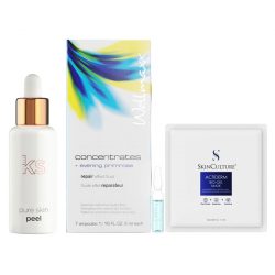 Ekseption Pure Skin Ekseption áp dụng độc quyền phương pháp peel da không bào mòn tại Việt Nam. Cải thiện hiệu ứng cấu trúc da và điều tiết nồng độ da với sự kết hợp tuyệt vời từ: Salicylic Acid có nồng độ vừa phải trực tiếp lên da đem lại hiệu quả tẩy da chết. Không làm tổn thương lỗ chân lông và các mạch máu dưới da. Gluconolactone là hợp chất vàng trong hóa học thẩm mỹ da. Đây là một dạng PHA an toàn, được tổ chức FDA liệt kê và chứng nhận an toàn cho cả da nhạy cảm. Mandelic Acid là “vũ khí” mới cho da mụn, không đều màu, lỗ chân lông to và lão hóa da. Mandelic được chuyên gia đánh giá cao vì thừa hưởng tất cả khả năng “mạnh” nhất của AHA. Làm sạch da, xử lý mụn, dưỡng ẩm, mờ sẹo và hóa ngăn ngừa lão hóa.