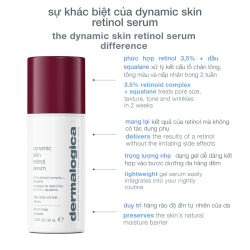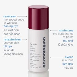Dermalogica Dynamic Skin Retinol Serum là tinh chất chứa 3.5% hợp chất Retinoid + Squalane có tác dụng thu nhỏ lỗ chân lông, cải thiện kết cấu da và cải thiện tone màu da được trẻ trung.
