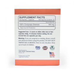 Giấy chứng nhận 100% tính xác thực của chiết xuất Cordyceps Sinensis (đã được trồng và sản xuất tại Hoa Kỳ. Hữu cơ – không thêm chất pha trộn cùng với viên nang phù hợp cho người ăn chay) đính kèm theo trong mỗi sản phẩm.
