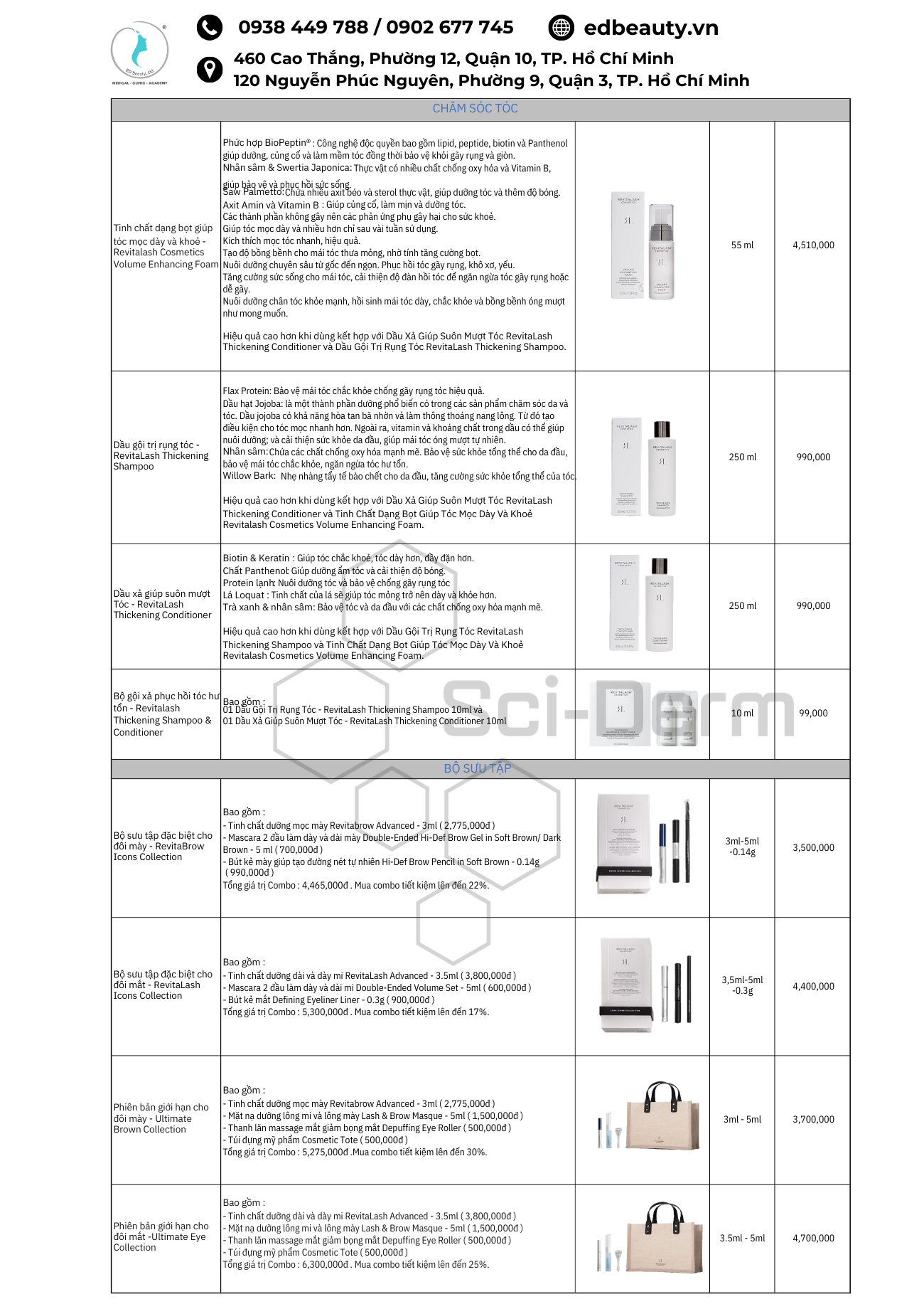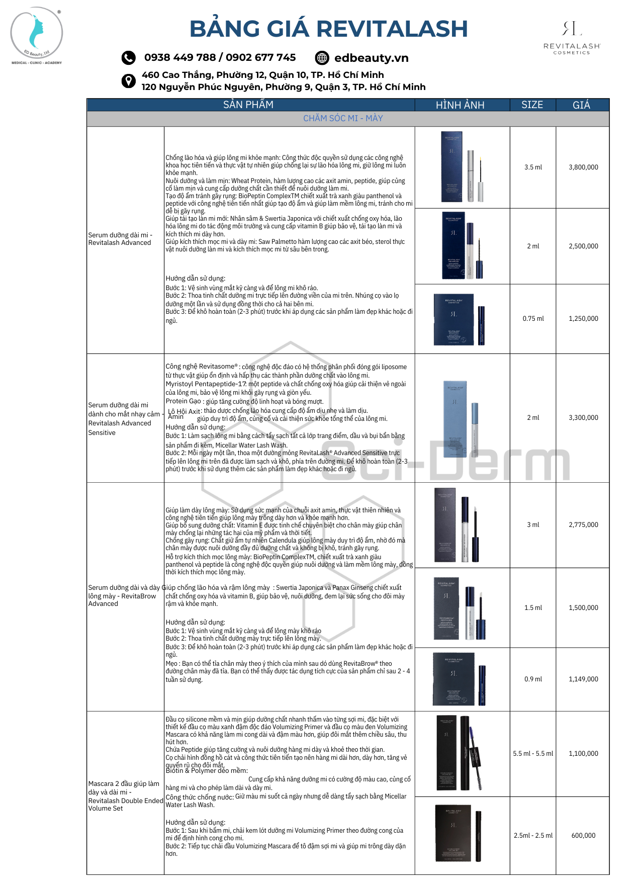 Thông tin bảng giá sản phẩm Revitalash mới sau đây
