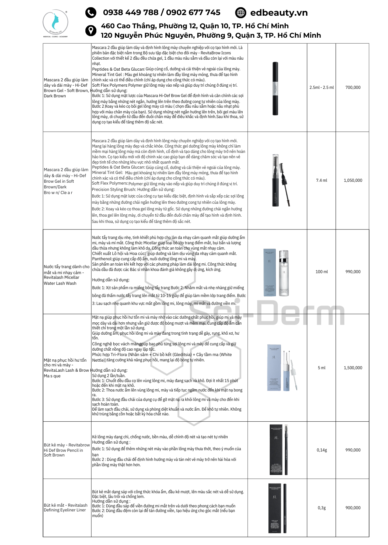 Revitalash là thương hiệu mỹ phẩm chăm sóc tóc, lông mi, lông mày được thiết kế đặc biệt để nâng cao, phục hồi, tăng vẻ đẹp tự nhiên cho hàng mi, mày và tóc. Trên hành trình hơn 15 năm phát triển và nghiên cứu để chăm sóc mi, mày, tóc cho hàng triệu tín đồ làm đẹp trên thế giới. Quý khách hàng sẽ luôn nhận được sự bảo hộ 100% về chất lượng, độ an toàn và thời hạn sử dụng của sản phẩm khi mua từ các kênh phân phối chính thức của Revitalash (ED Beauty).